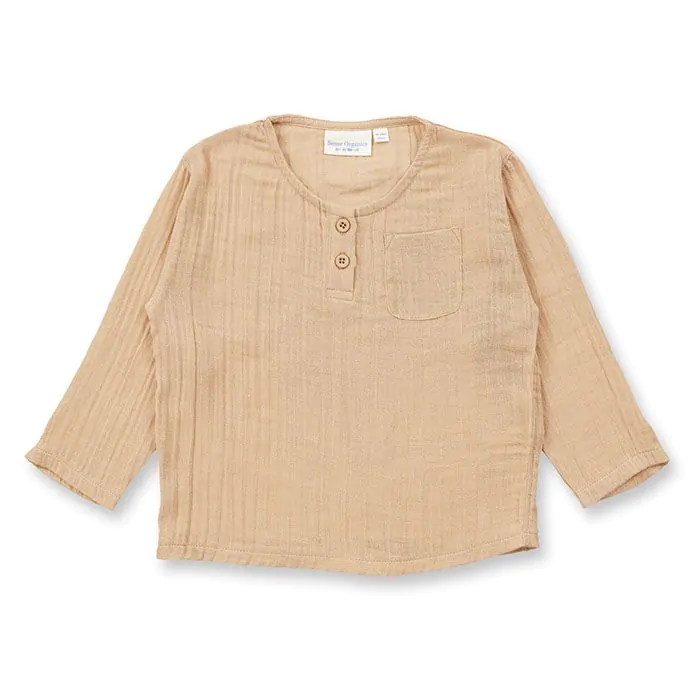 Musselin-Langarmshirt, Biobaumwolle, GOTS-zertifiziert, tiefseeblau