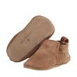 Die Schläppchen sind aus Veloursleder gefertigt und haben ein ENFANT-Logo an der Seite. Die Unterseite aus Wildleder sorgt für einen guten Halt.