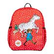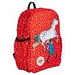 Der rote Rucksack "Leikki" mit Pippi-Langstrumpf-Motiv ist kompakt und bietet trotzdem viel Platz und eine durchdachte Aufteilung mit zwei offenen Taschen mit Gummizügen an den Seiten, einem großen Fach und einem weiteren Innenfach mit Gummizug.