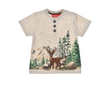 Das T-Shirt von Bondi ist aus weicher Jerseyware aus Melangegarn und besticht durch eine trachtige Druck-Stick-Kombination und einer Fake-Knopfleiste.