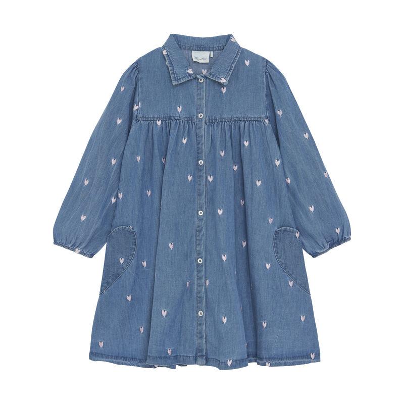Kleid mit Herzchen im Jeanslook, Biobaumwolle, GOTS-zertifiziert
