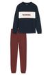Der lange Schlafanzug besteht aus einem nachtblauen Langarmshirt mit Rundhalsausschnitt und „San Fransicso City & Sports“-Schriftzug sowie einer braunen Schlafhose mit Softbund. Für perfekten Sitz und hohen Tragekomfort sorgen die Rippenstrickbündchen an den Ärmel- und Beinabschlüssen und die weiche Single-Jersey-Qualität aus reiner Organic Cotton.